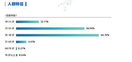 本次问卷设置为男性、女性版本,男性受访者占比62.31%,女性受访者占比37.69%。受访者主要集中在35-50岁,占比44.72%。多数受访者的教育水平集中在高中及大专和本科学历。一线城市受访者占比最高,达到48.31%,二三线城市比例为28.96%,省会城市比例为9%,乡镇和农村受访者比例合约14%。