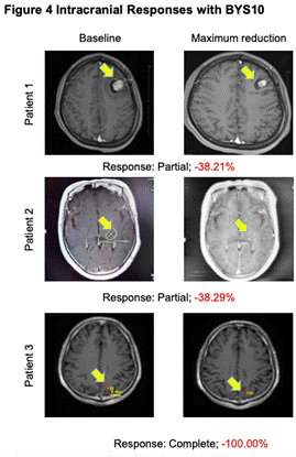 研究人员在4例至少有1个可测量颅内病灶(1例颅内完全缓解)的患者中观察到颅内抗肿瘤活性。